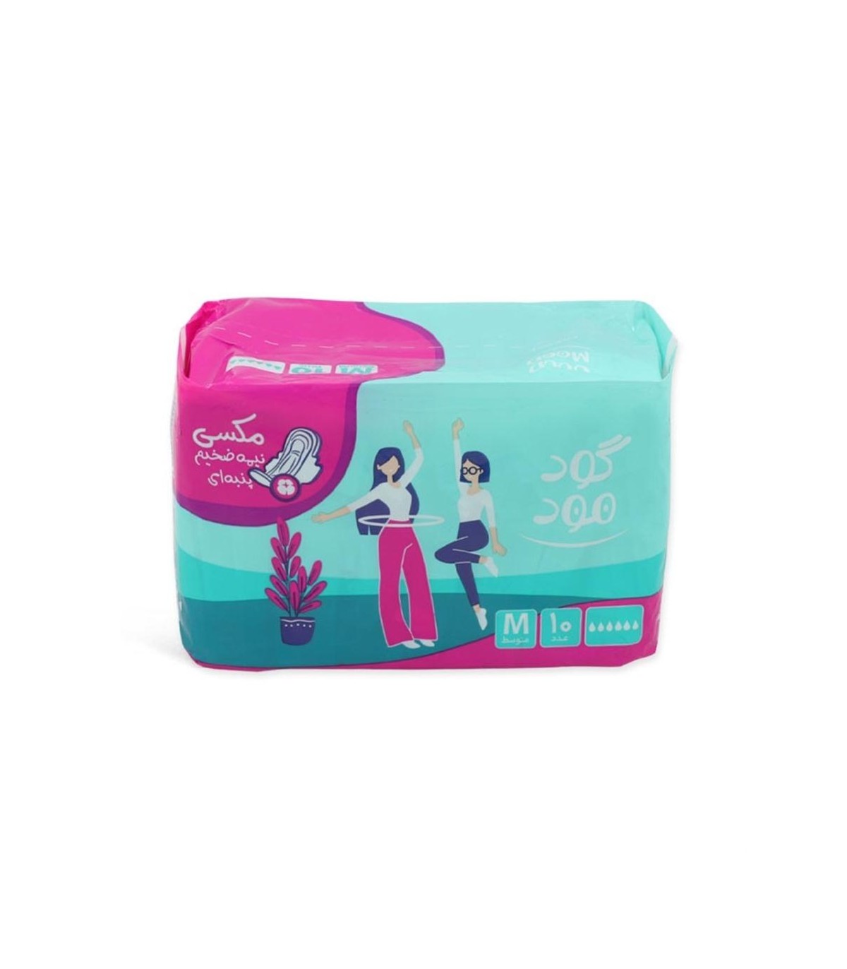 نوار بهداشتی مکسی مشبک بزرگ بزرگ گودمود با بسته بندی تکی و حمل اسان و بهداشتی با لایه رویی با حس نرمی پنبه و حس لطافت در عین خشکی و کانالهای محافظ جلو و عقب و جلوگیری از نشتی جلو و عقب نوار