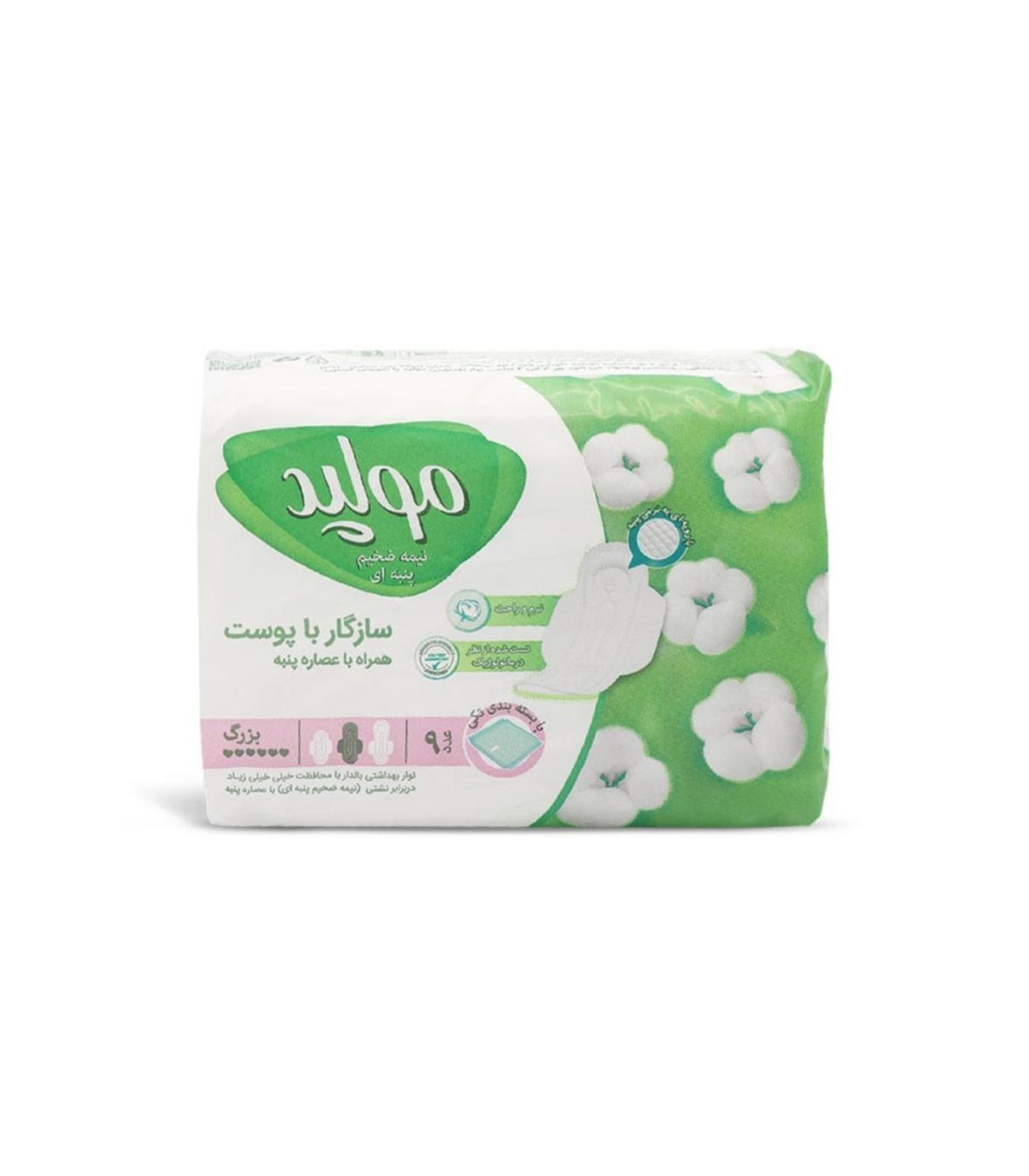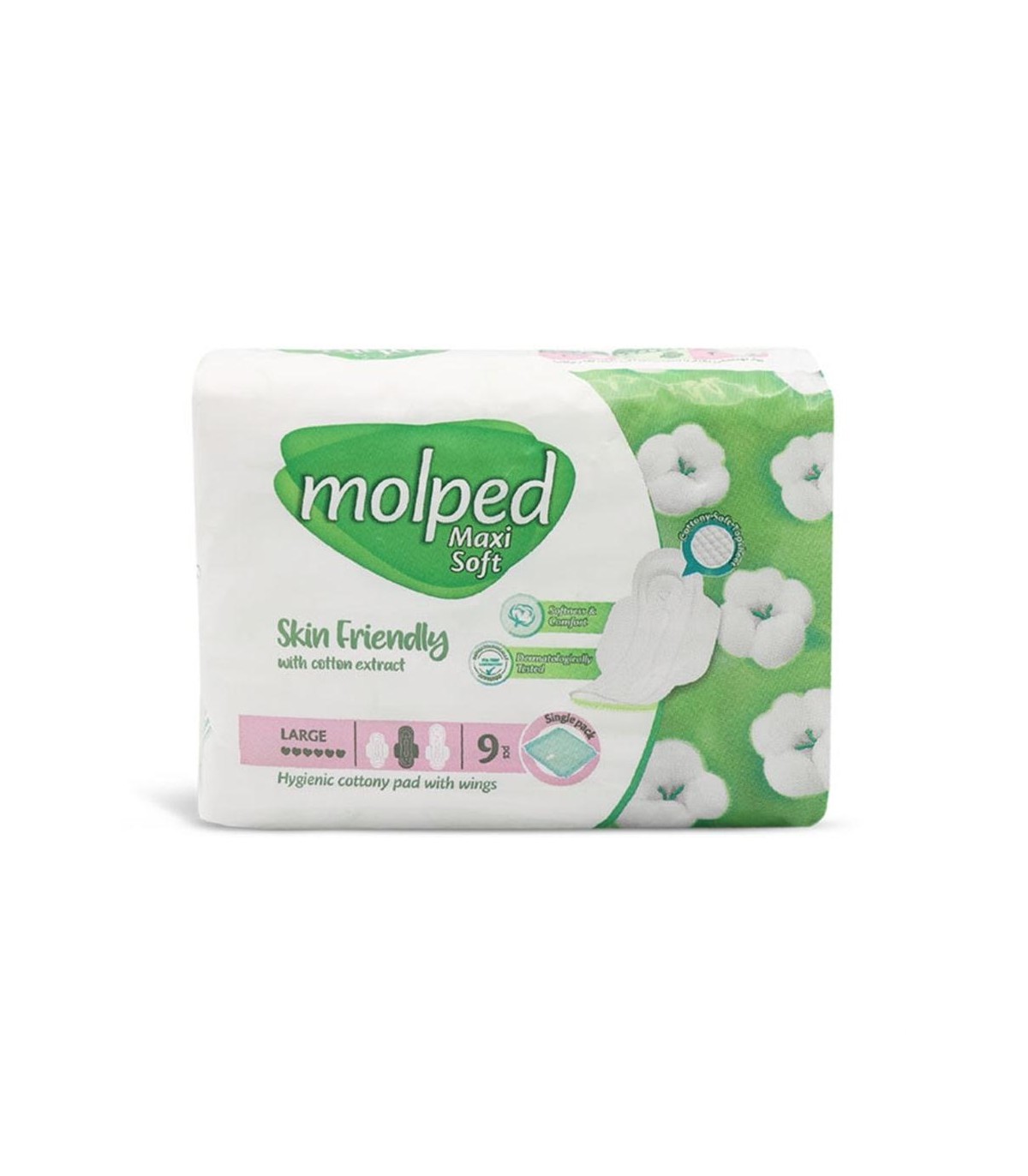 نوار بهداشتی مکسی سافت بزرگ مولپد با رویه ای به نرمی پنبه و نرم و راحت دارای تاییدیه درماتولوژیک سازگار با پوست