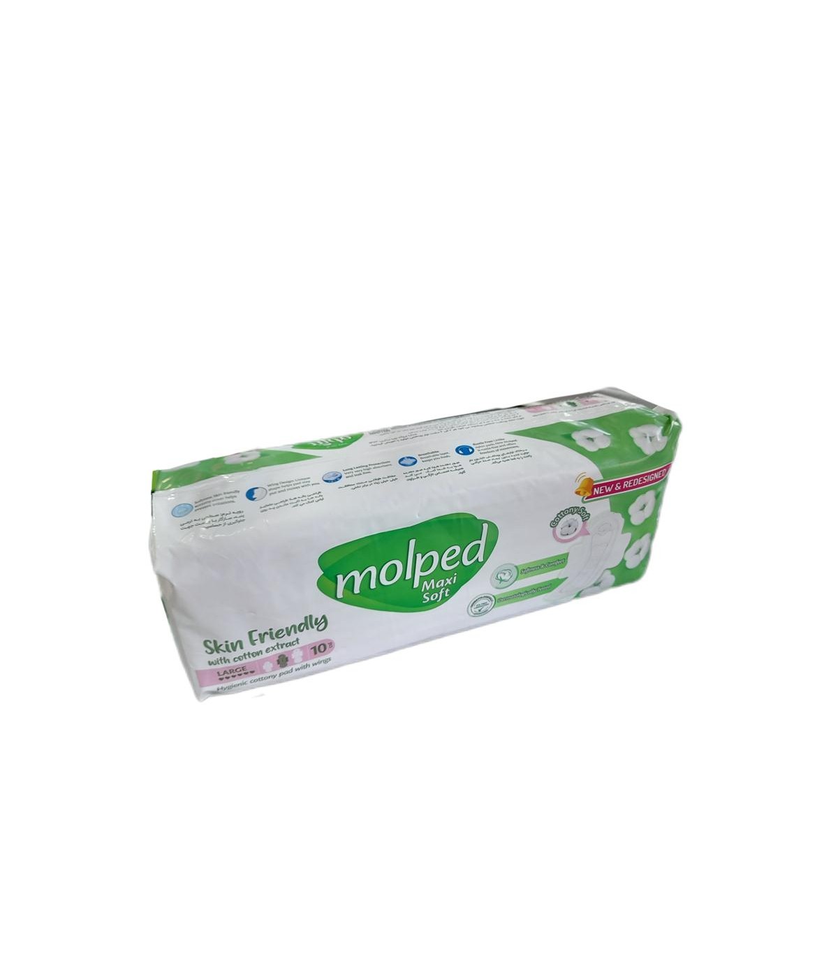 نوار بهداشتی مکسی سافت بزرگ مولپد با رویه ای به نرمی پنبه و نرم و راحت دارای تاییدیه درماتولوژیک سازگار با پوست