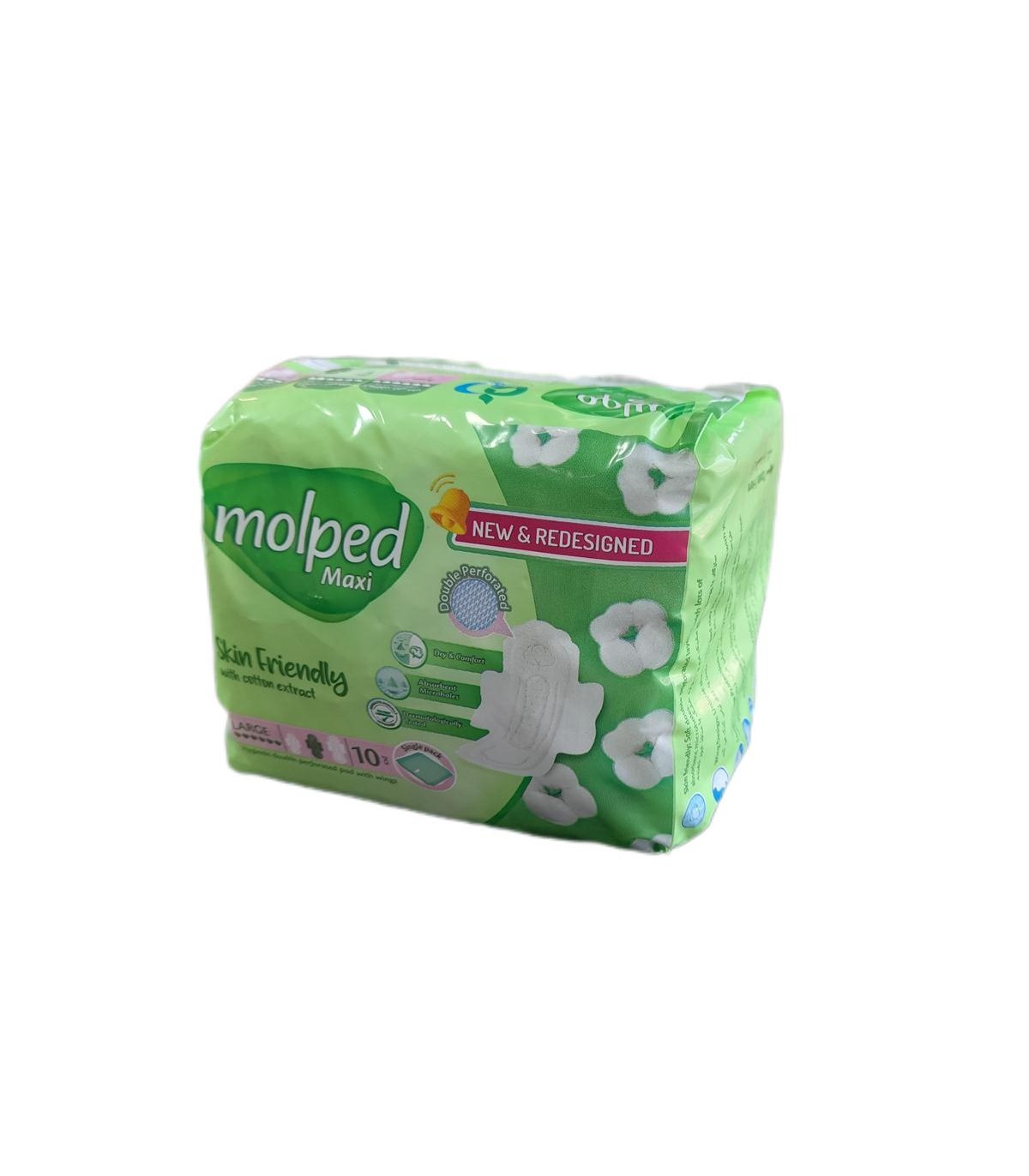 نوار بهداشتی مکسی سافت بزرگ مولپد با رویه ای به نرمی پنبه و نرم و راحت دارای تاییدیه درماتولوژیک سازگار با پوست