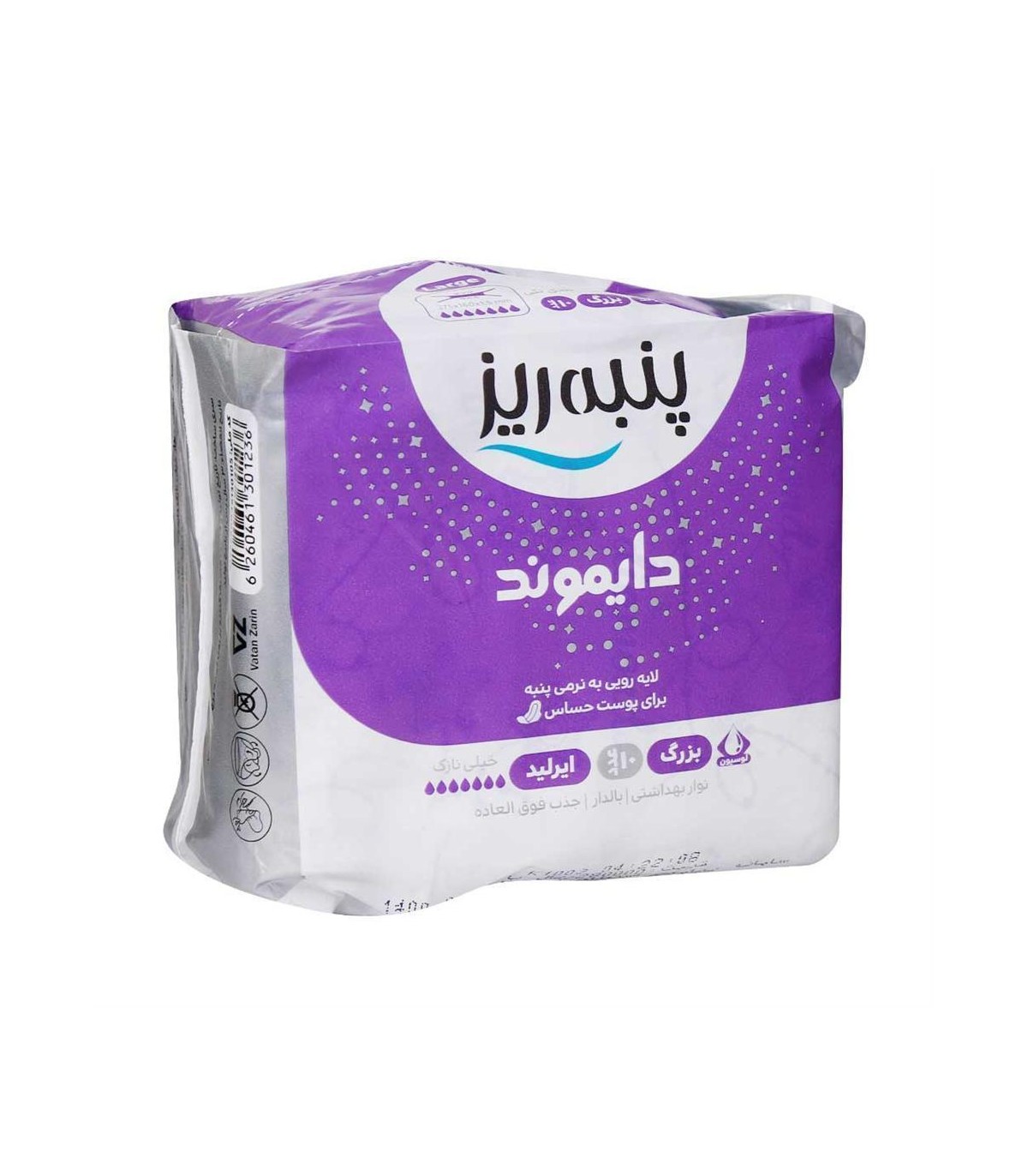ویژگی‌های نوار بهداشتی بزرگ دایموند پنبه‌ریز