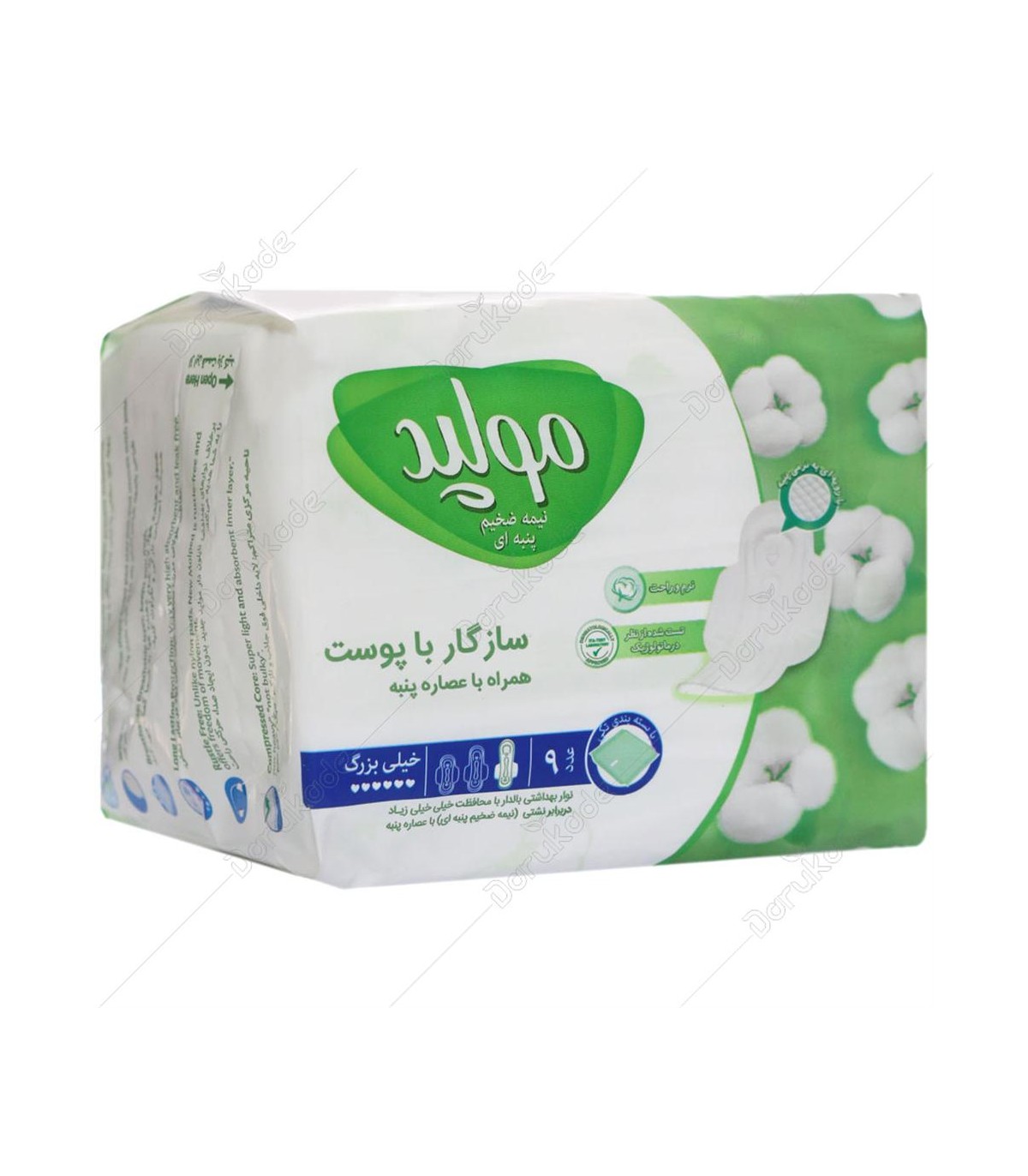 در روز هایی که نیاز به محافظت حداکثری دارید ، نوار بهداشتی خیلی بزرگ مولپد بهترین همراه شما است . این محصول با سایز ویژه و سطح گسترده خود ، سطح پوششی کامل و ایمن فراهم می کند تا هیچ نگرانی بابت نشتی در طول شب یا روز نداشته باشید .جهت حفظ بهداشت شخصی پیشنهاد میشود هر 3 الی 4 ساعت نوار بهداشتی مولپد را تعویض فرمایید