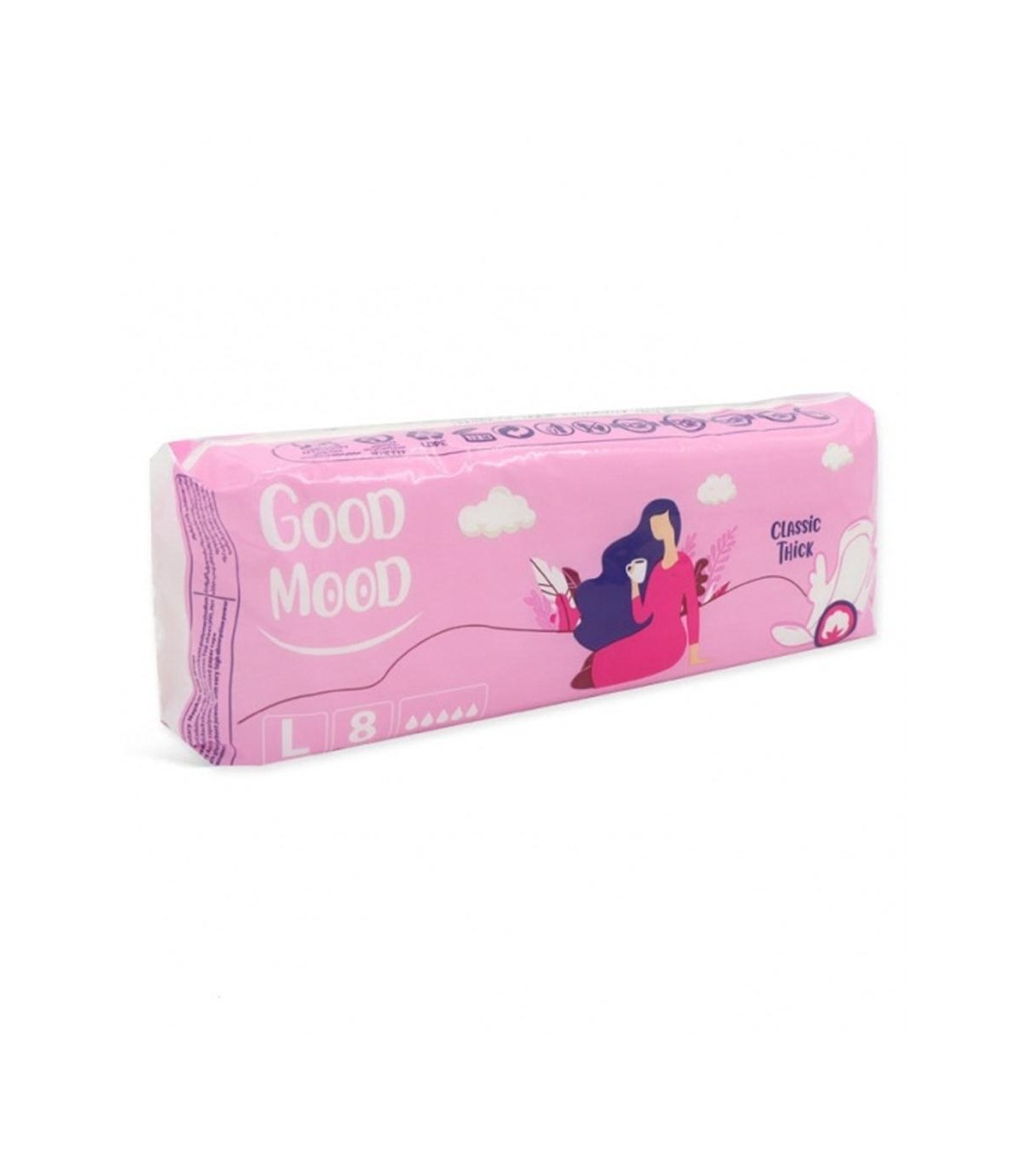 نوار بهداشتی کلاسیک صورتی بزرگ گودمود با قدرت جذب بالا با باله های انعطاف پذیر و اطمینان در حین حرکت و لایه رویی با حس نرمی پنبه و مناسب پوست های حساس دارای کانال های جاذب و جذب توزیع مایعات و چسب زیری استاندارد