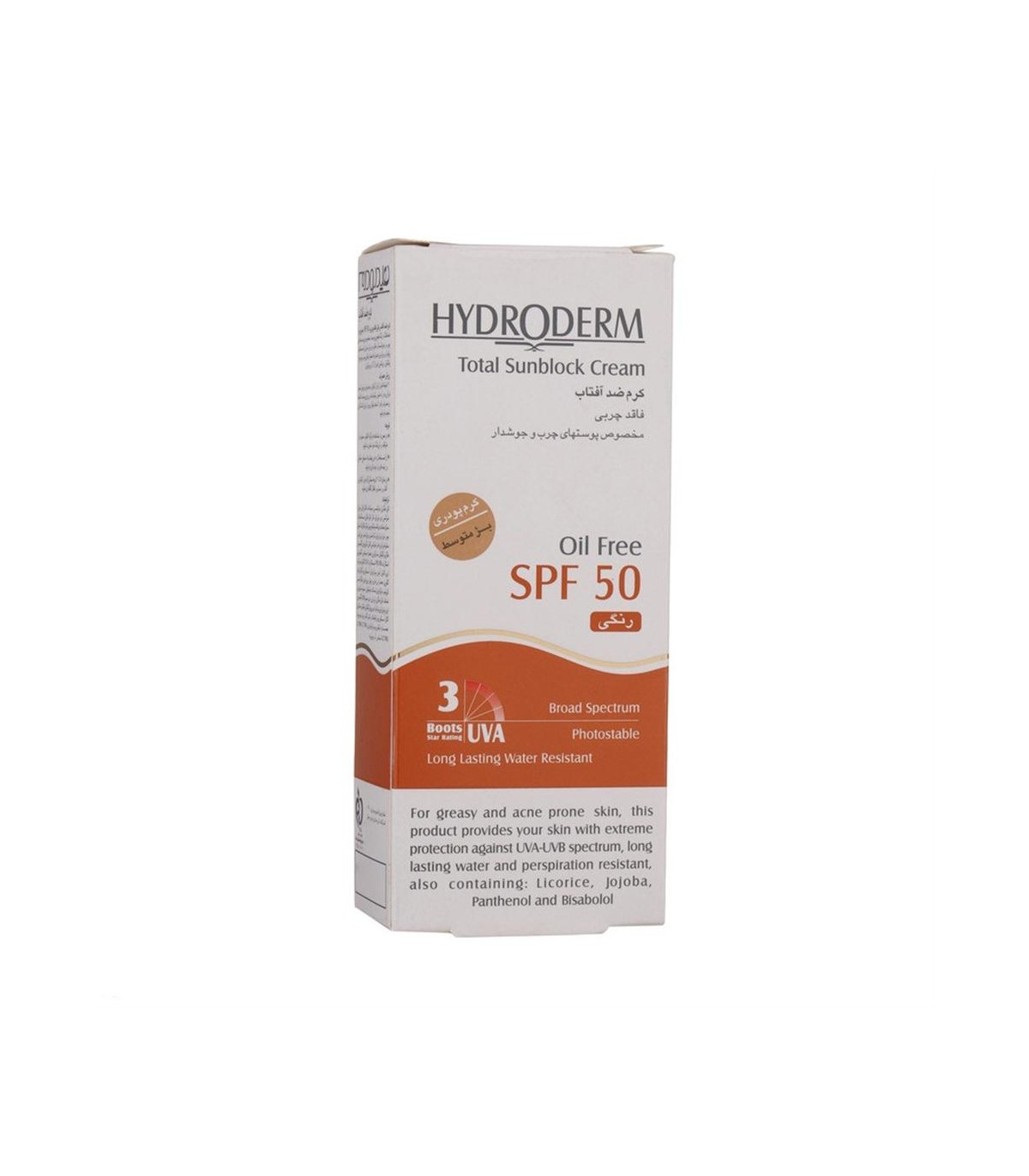 ضد آفتاب رنگی هیدرودرم با spf 50 مناسب پوست های چرب و مستعد جوش با کاور سبک و ضد تعریق است که بدون بستن منافذ از پوست در برابر آفتاب محافظت میکند.