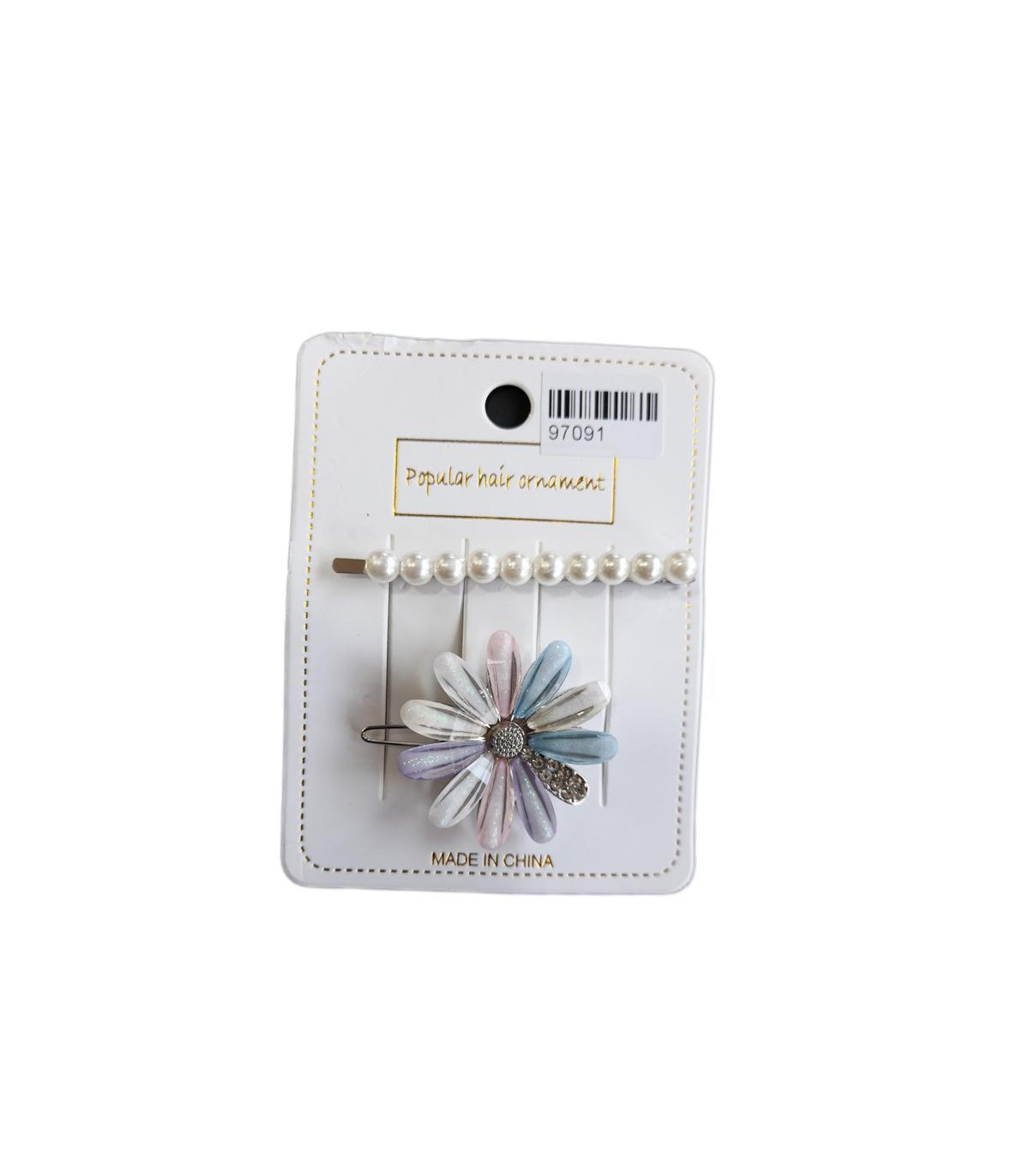 سنجاق موی سر نگین دار مروارید گل بابونه جفتی
