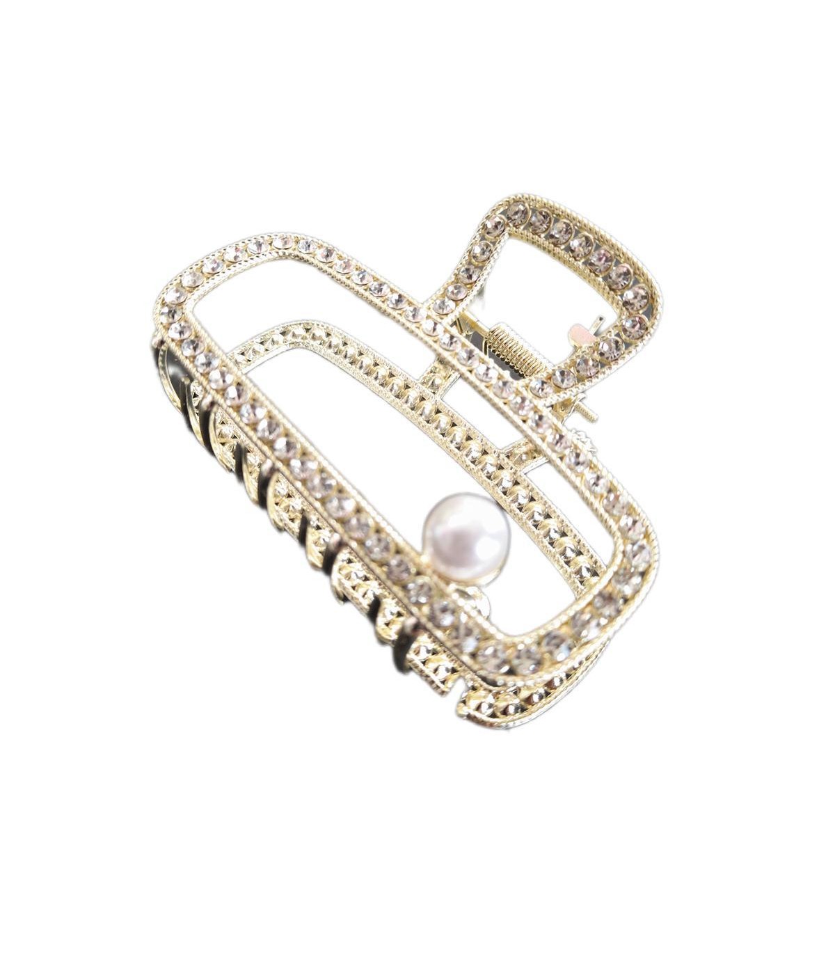 کلیپس موی سر فلزی طلایی بزرگ نگین دار