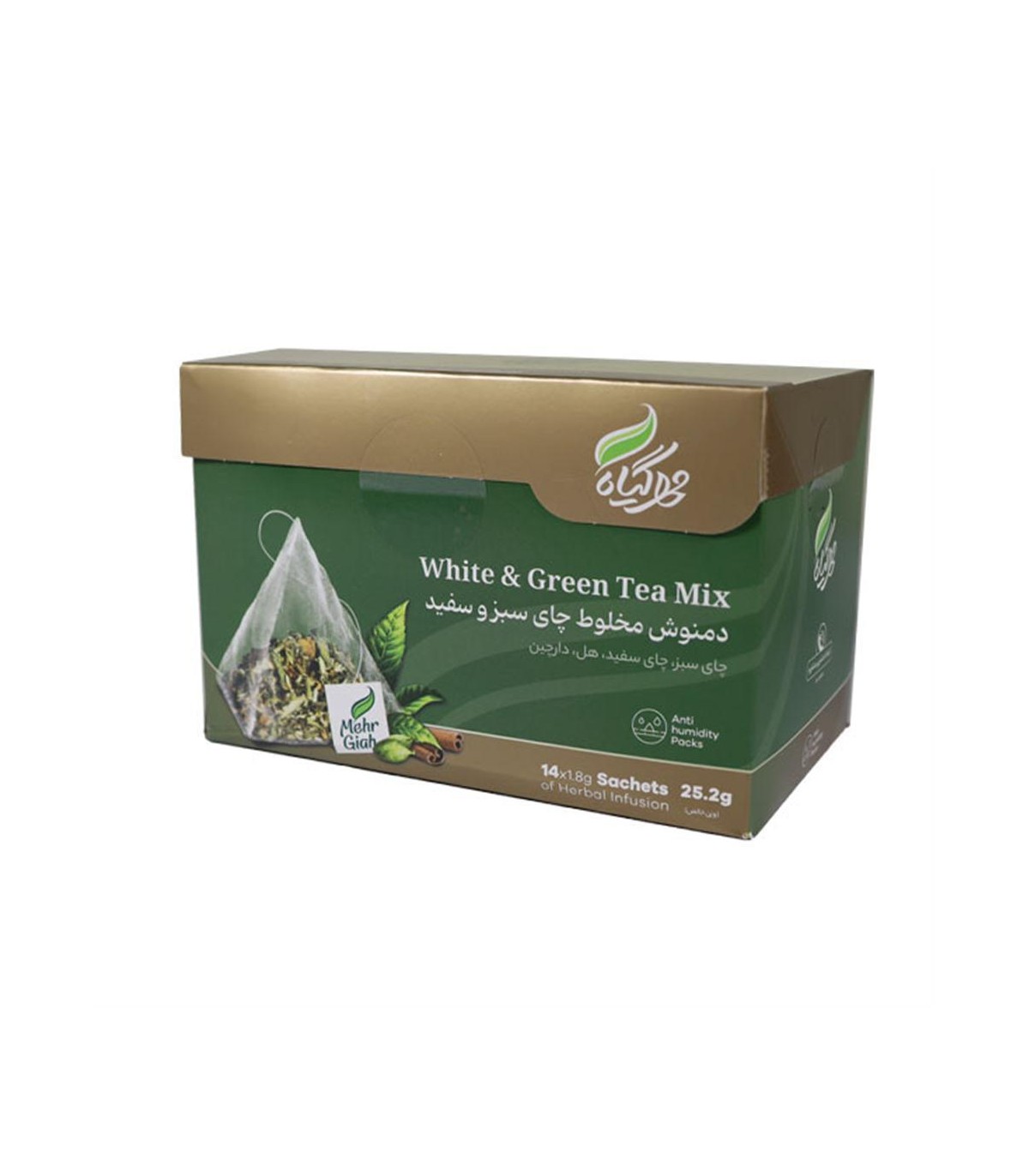 دمنوش مخلوط چای سبز و سفید هل و دارچین