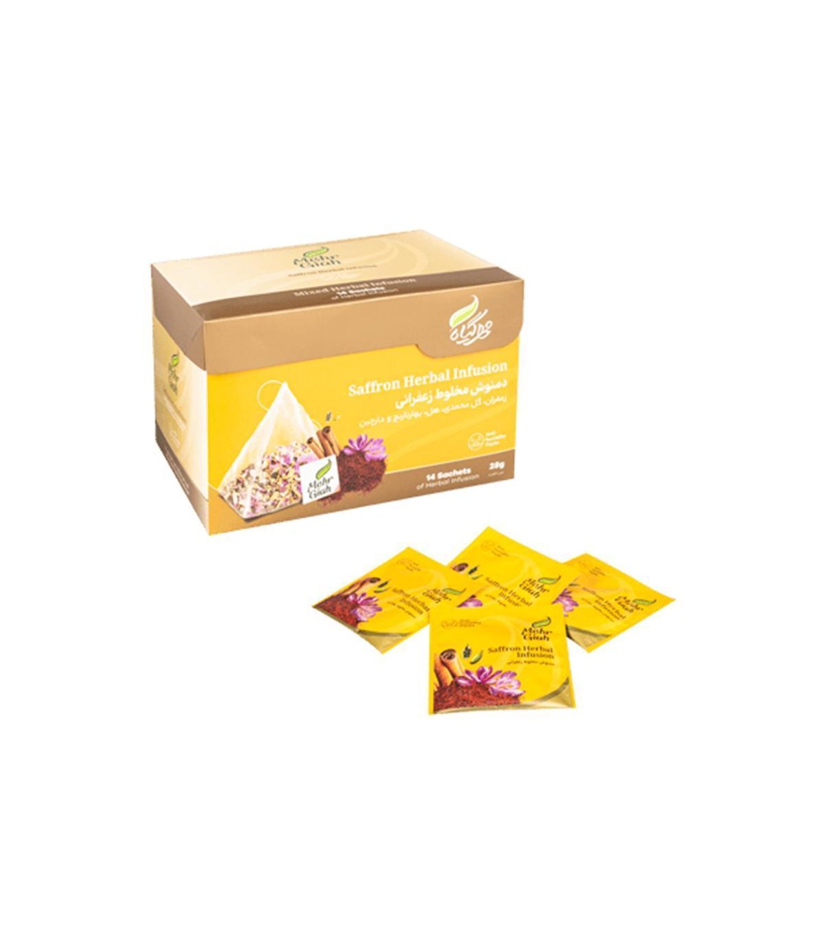 دمنوش 14 عددی مخلوط زعفران (قیمت قدیم انقضاء 406/03/05) مهر گیاه