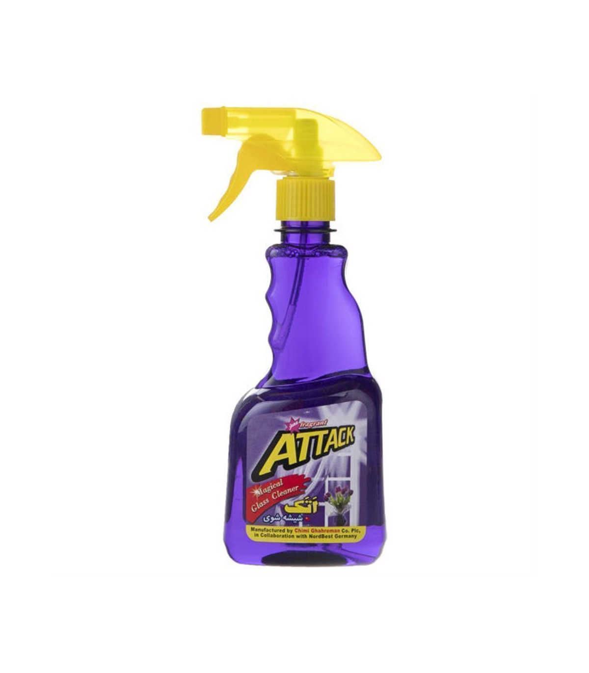 ششه پاک کن اتک با قدرت پاک کنندگی زیاد لکه ها و چربی ها از سطح شیشه پاک می کند. این محصول سریع از روی سطح شیشه بدون بر جا ماندن لکه خشک می شود. دارای بوی خوشی است که هنگام مصرف شیشه پاک کن در فضا پخش می شود.