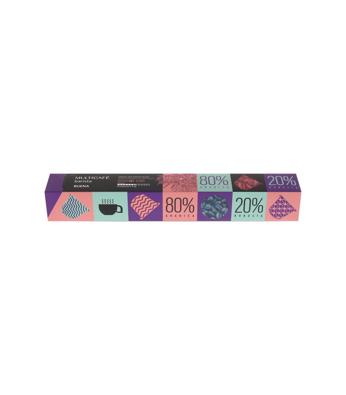 کپسول قهوه مولتی کافه مناسب برای تهیه اسپرسو . ترکیب عالی 20% روبستا و 80% درصد عربیکا برای طعم و عطر بهتر . تهیه شده از دانه های قهوه با کیفت تازه و برشته .