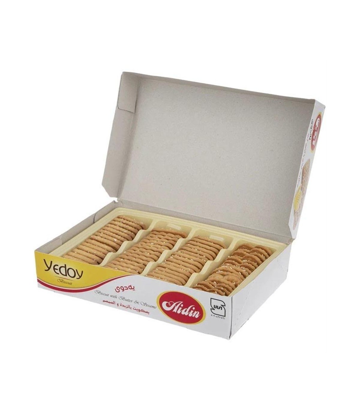 بیسکویت پذیرایی کرهای Yedoy آیدین، بیسکویتی نرم و کرانچی با طعم خوش کرهای اصیل است. این محصول با بستهبندی مناسب، گزینهای عالی برای میانوعده و پذیرایی در مهمانیها محسوب میشود. کیفیت بالا و طعم ماندگار آن، رضایت تمام سنین را جلب میکند.