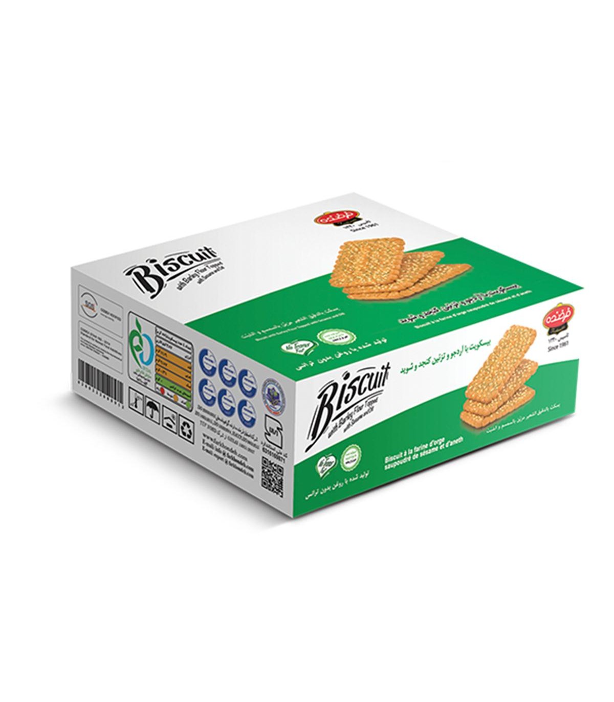 بیسکویت 750 گرم پذیرایی آرد جو و کنجد و شوید فرخنده