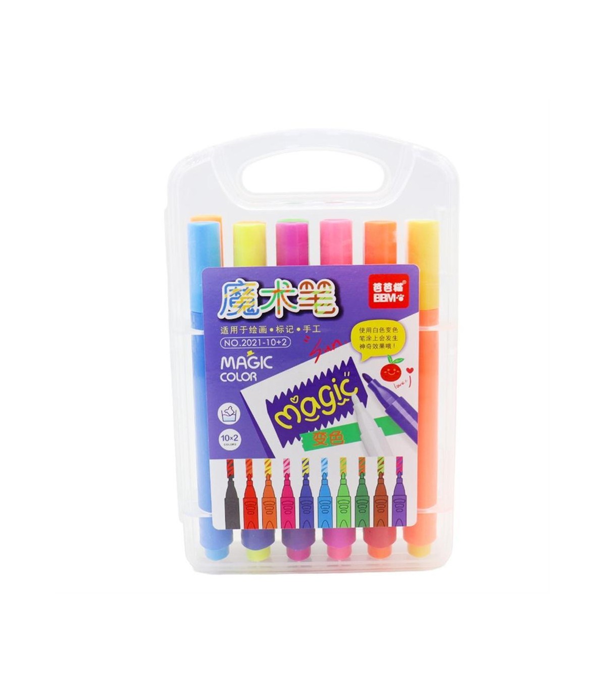 ماژیک 12 رنگ جادویی، مجموعهای سرگرمکننده و خلاقانه برای کودکان است. برخی از رنگها با ترکیب رنگ جادویی تغییر رنگ میدهند و باعث افزایش هیجان و خلاقیت در نقاشی میشوند.