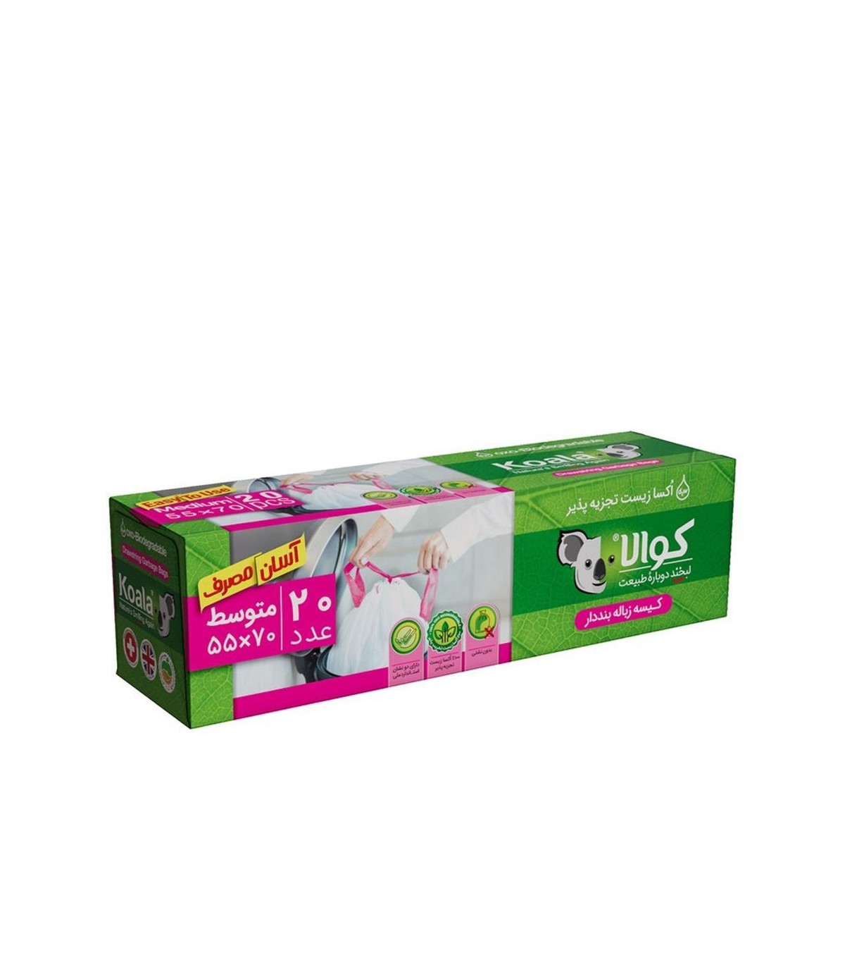 کیسه زباله بنددار اکسا زیست تخریب پذیر کوالا , متوسط , 55*70 , 20 عددی , زیست تخریب پذیر , محکم و مقاوم , بدون نشتی ,