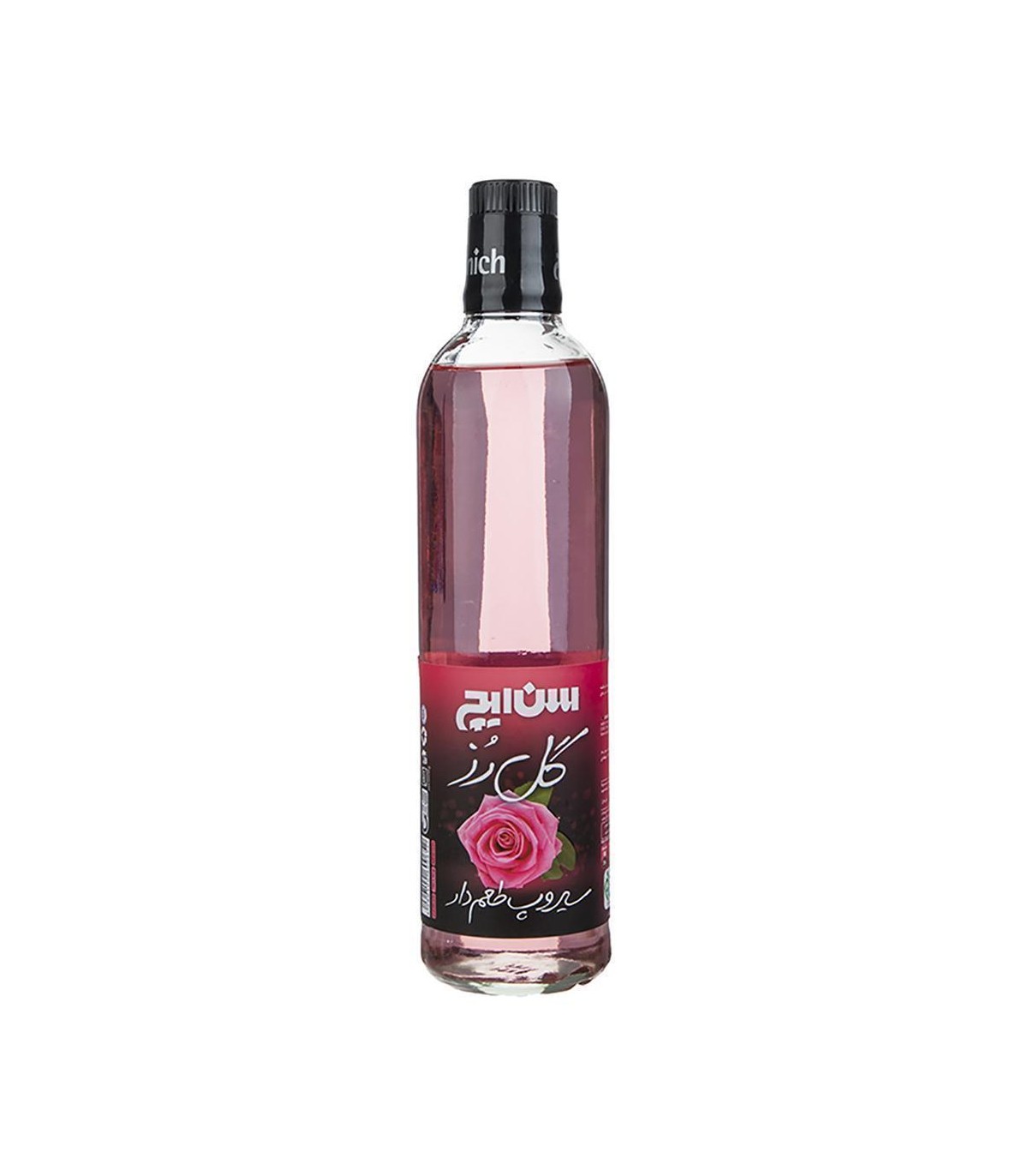 شربت تزئینی گل رز سن ایچ 1100 گرم حاوی شکر ، چکیده گیاهی گل رز ، اسید سیتریک ، طعم دهنده رز و آب می باشد.
